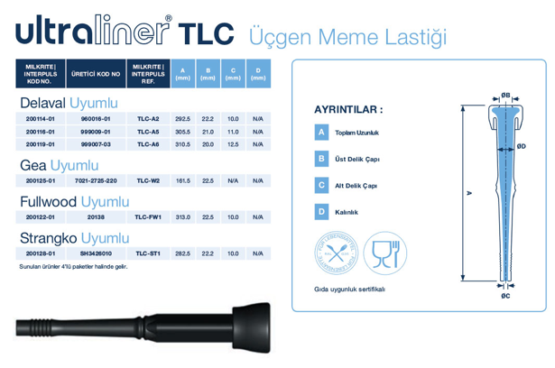 Ultraliner, tüm inekler, keçi ve koyun ırkları için çoğu markaya ve mandıra türüne uygun meme lastikleri sunar.